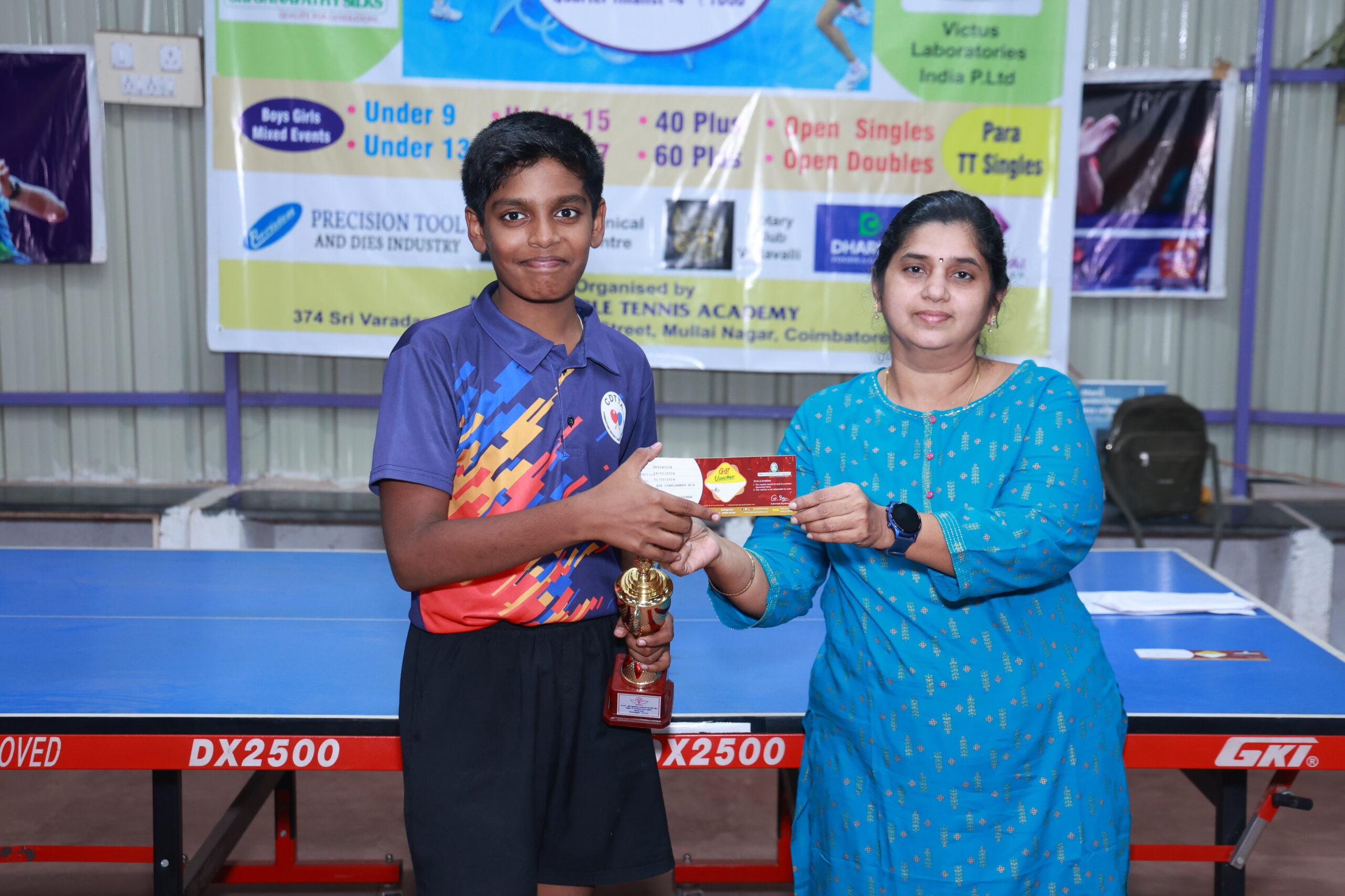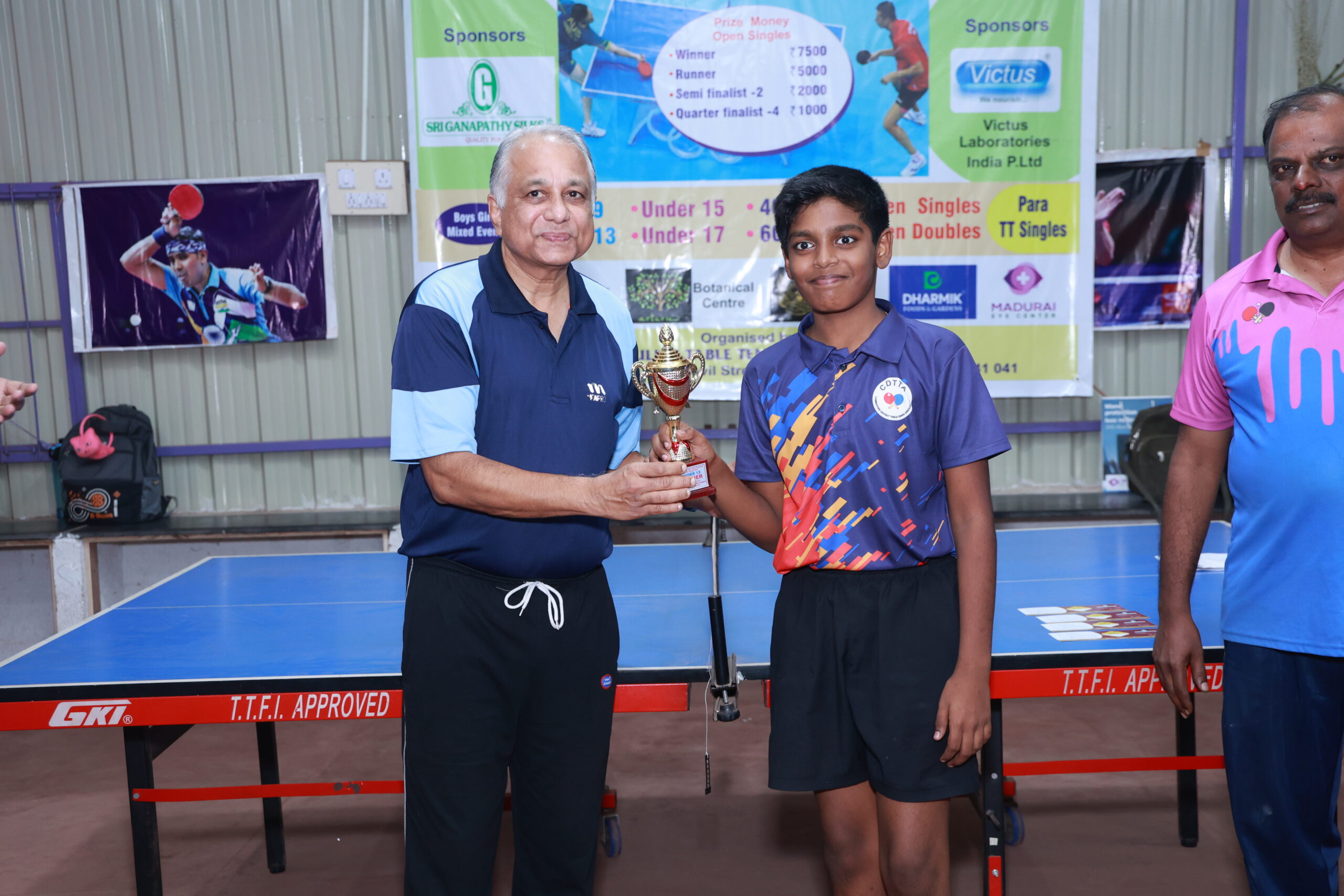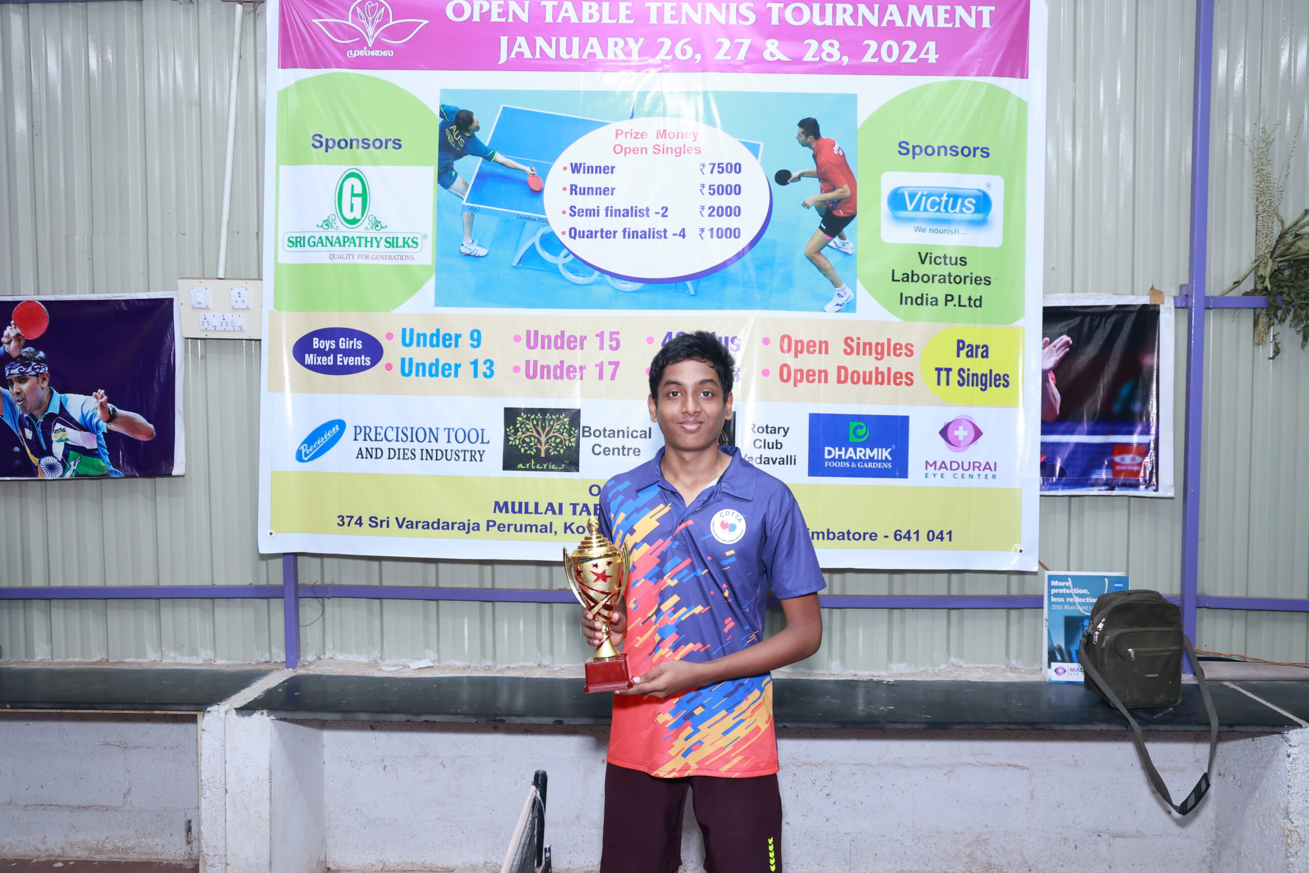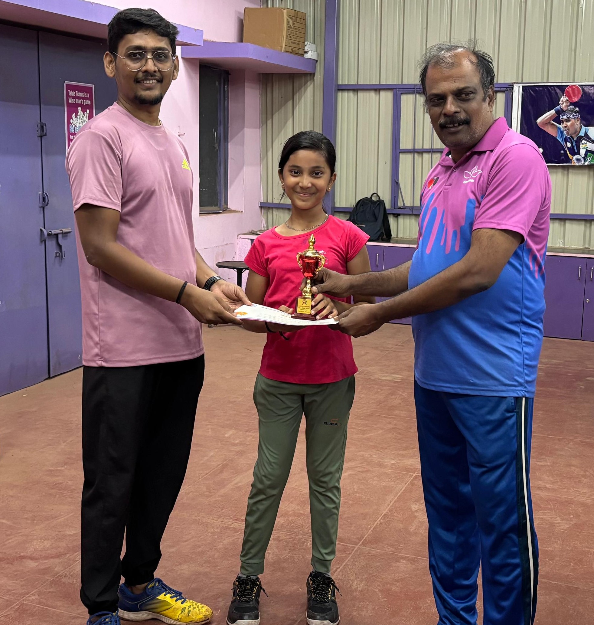 Photos of recently conducted open tournament Play Table Tennis, Be Happy & Enjoy Life Mehanthk sai – Quarter Finalist U11in First State Ranking Tournament 2024