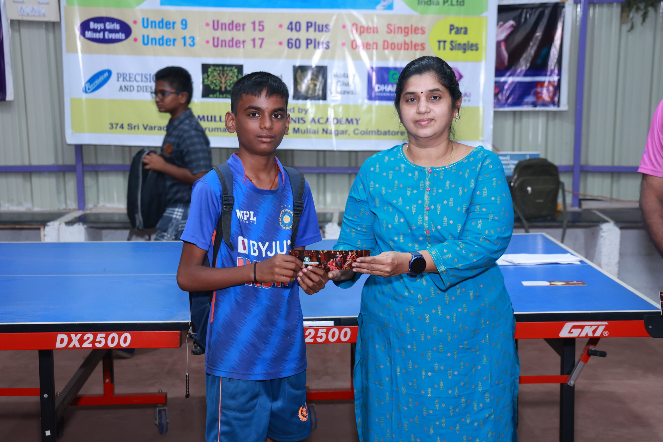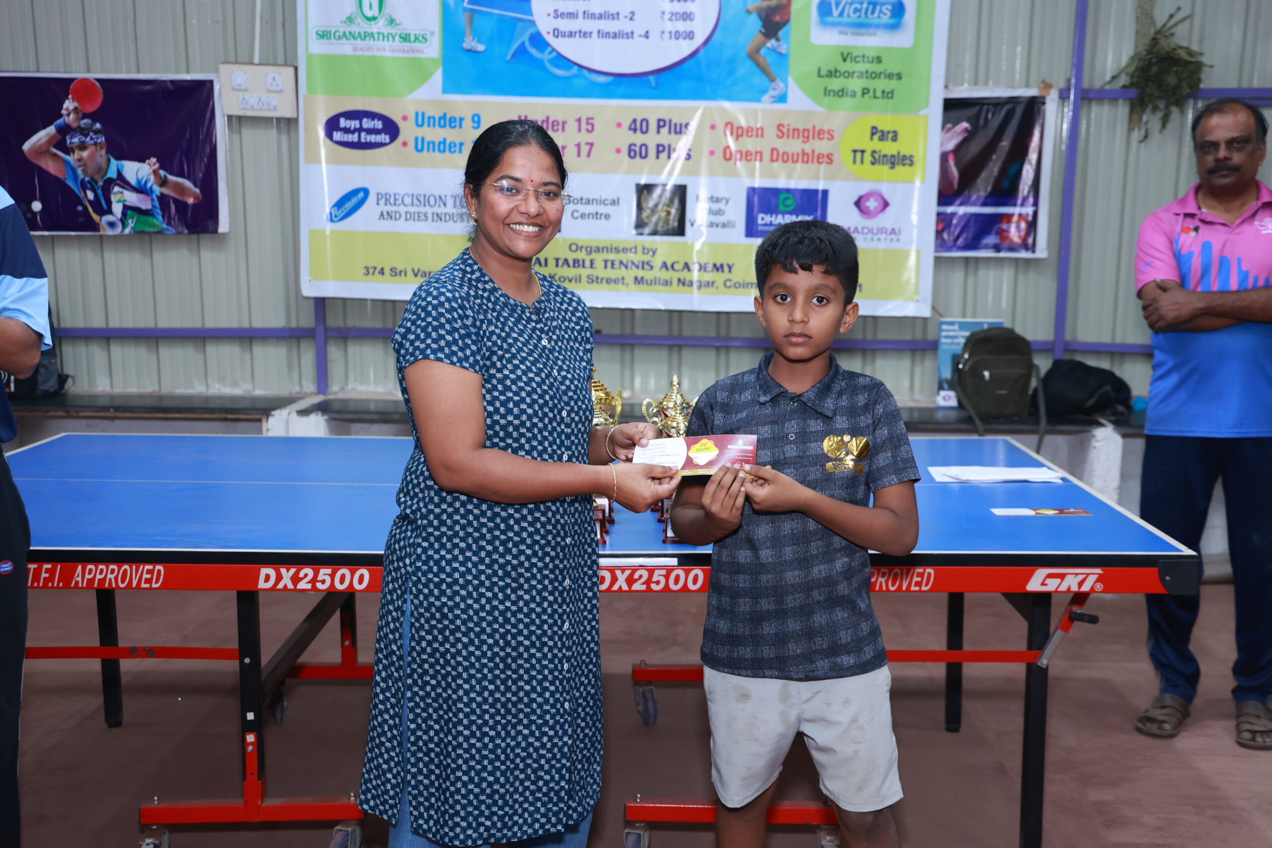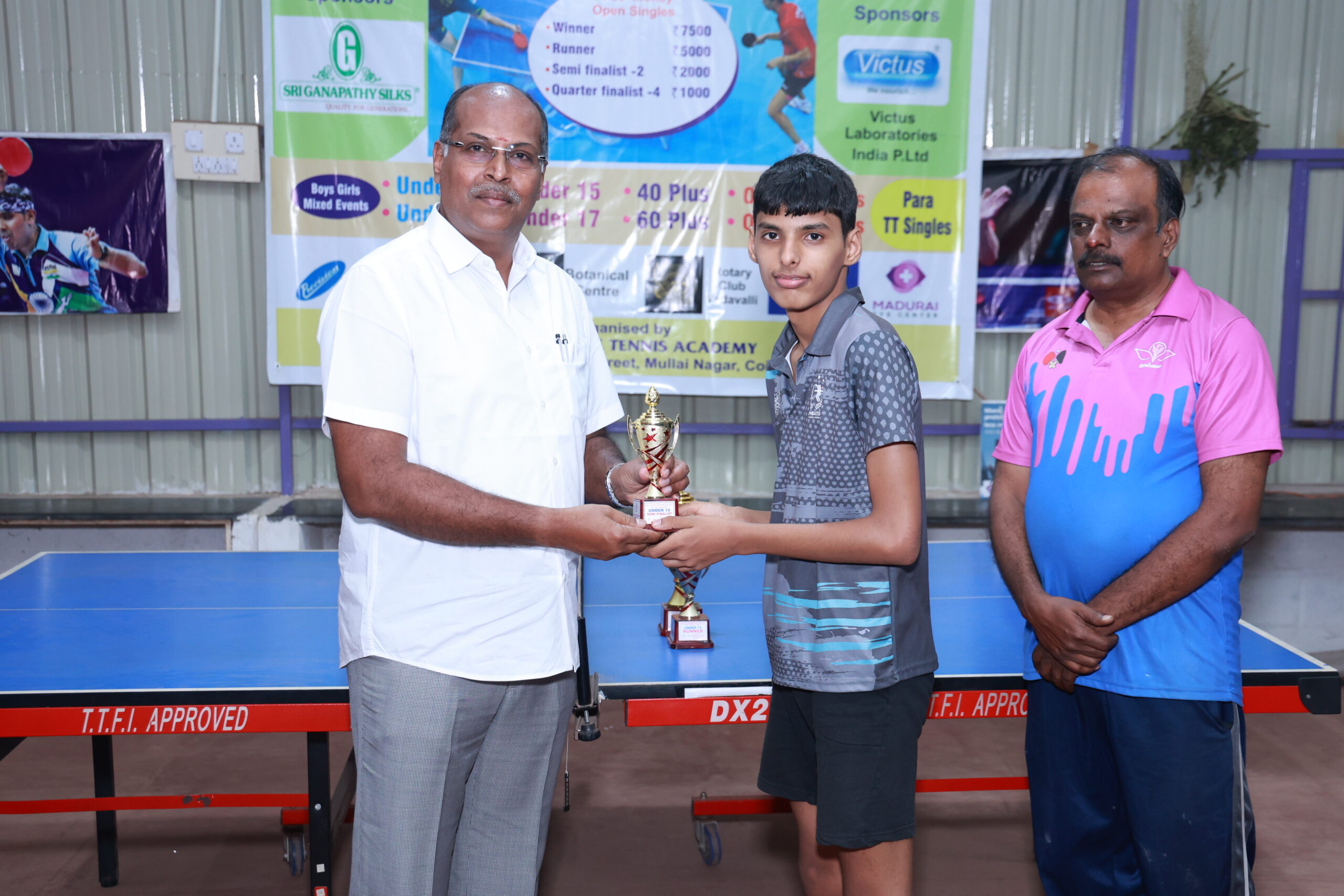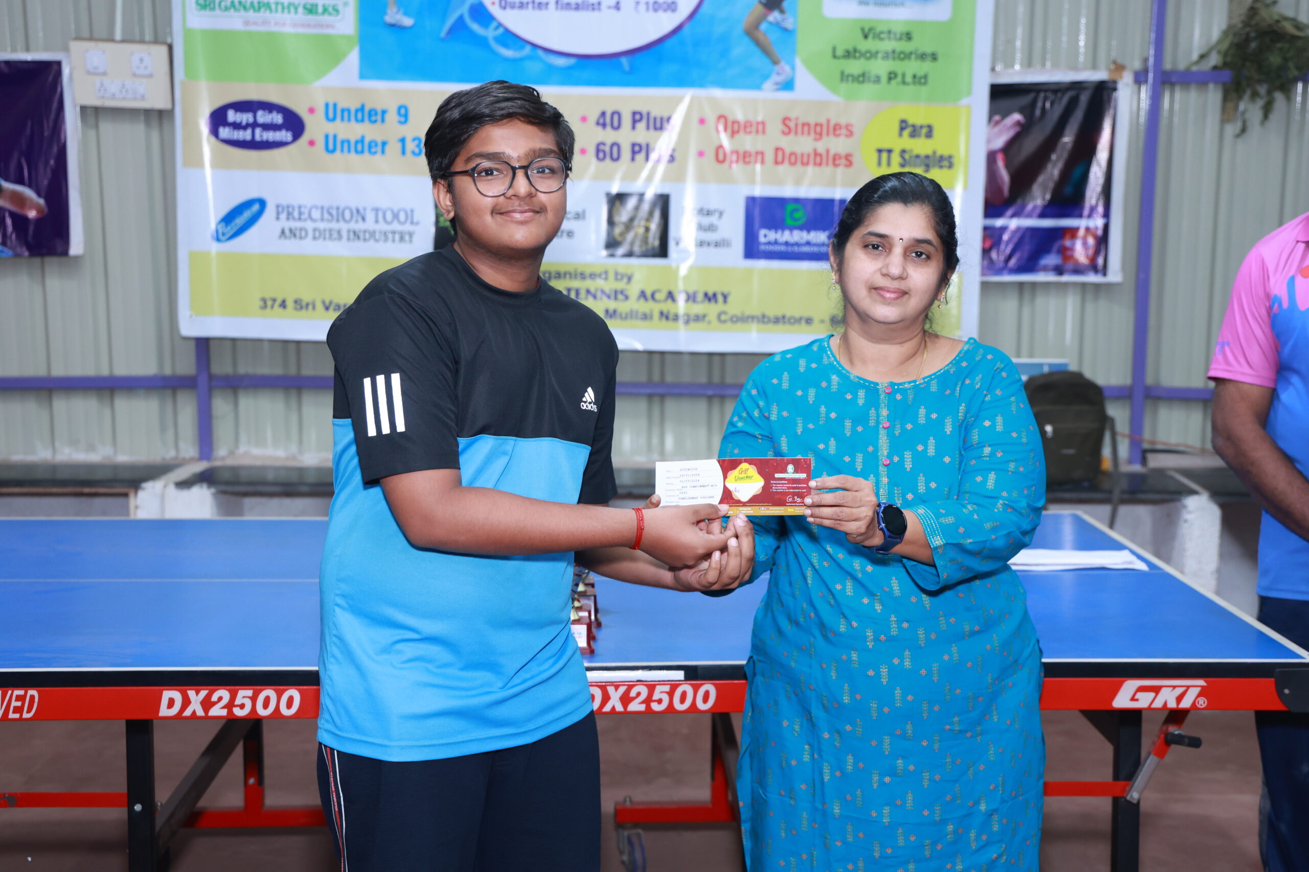 Photos of recently conducted open tournament Play Table Tennis, Be Happy & Enjoy Life Mehanthk sai – Quarter Finalist U11in First State Ranking Tournament 2024